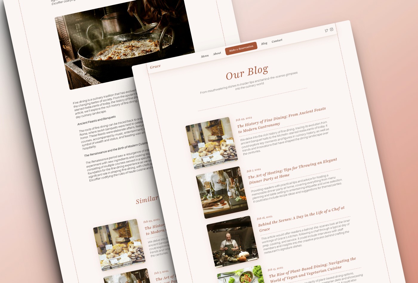 Step into the world of sophistication and culinary refinement with Grace, the ultimate template for restaurants. Grace exudes elegance and style, perfectly tailored to showcase the unique ambiance and exquisite offerings of your fine dining establishment.